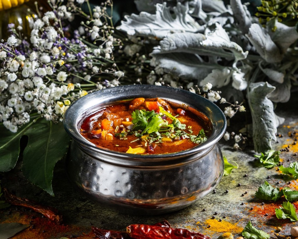 Lamb cooked in a saffron-infused tomato sauce enriched with Indian spices. The combination of lamb and saffron creates an elegant and rich flavor experience.