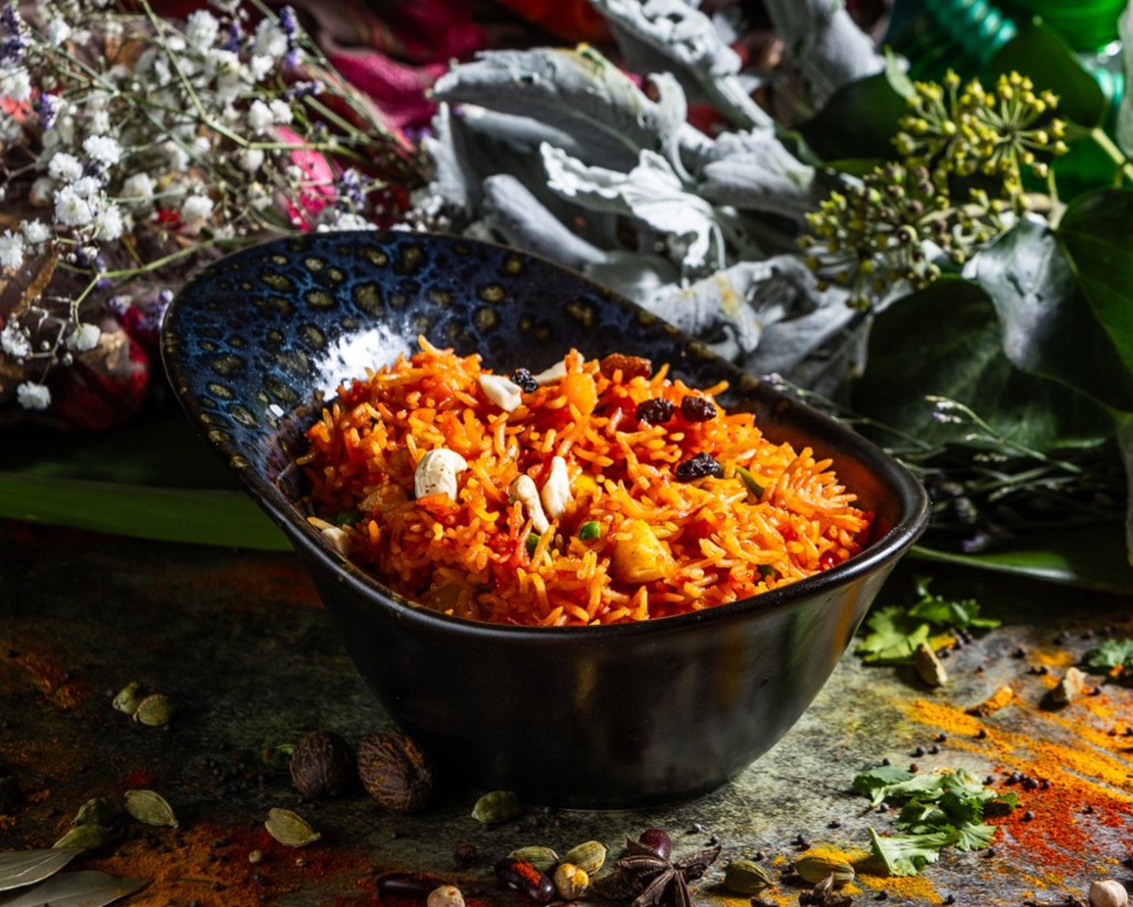 Basmati rice mixed with vegetables and fruits, creating a unique, sweet-and-salty dish. Perfect for those looking to experience the distinctive combinations of Indian cuisine.