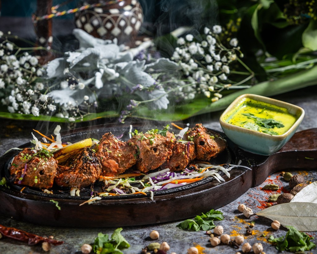 Grilled lamb cubes cooked with vegetables in seasoned tomato gravy