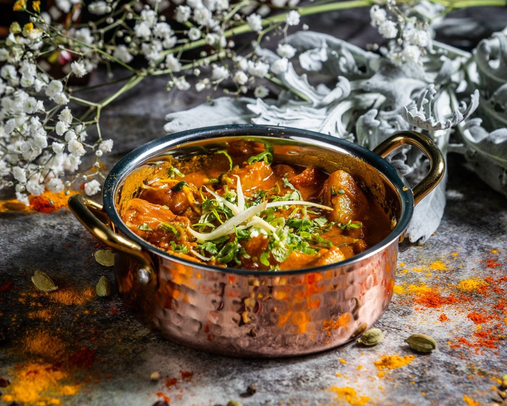 Achari-style pungent flavoured boiled potatoes. A dish that offers a tangy, spicy flavor profile