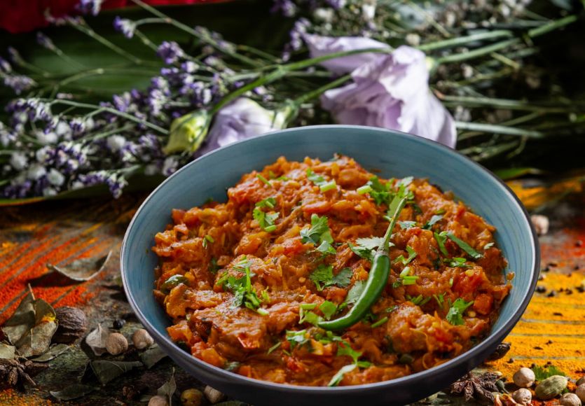 Grilled eggplant cream made with Indian spices. Smoky, smooth, and rich in flavour.