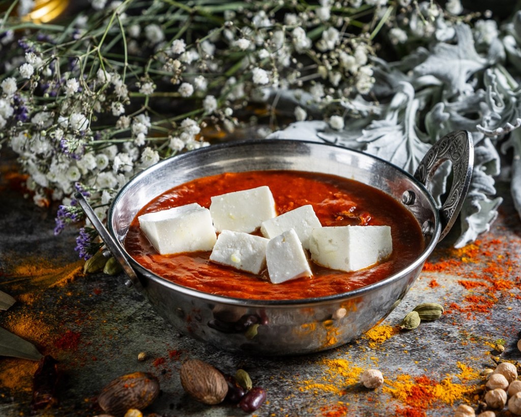Homemade paneer cheese simmered in a buttery tomato gravy