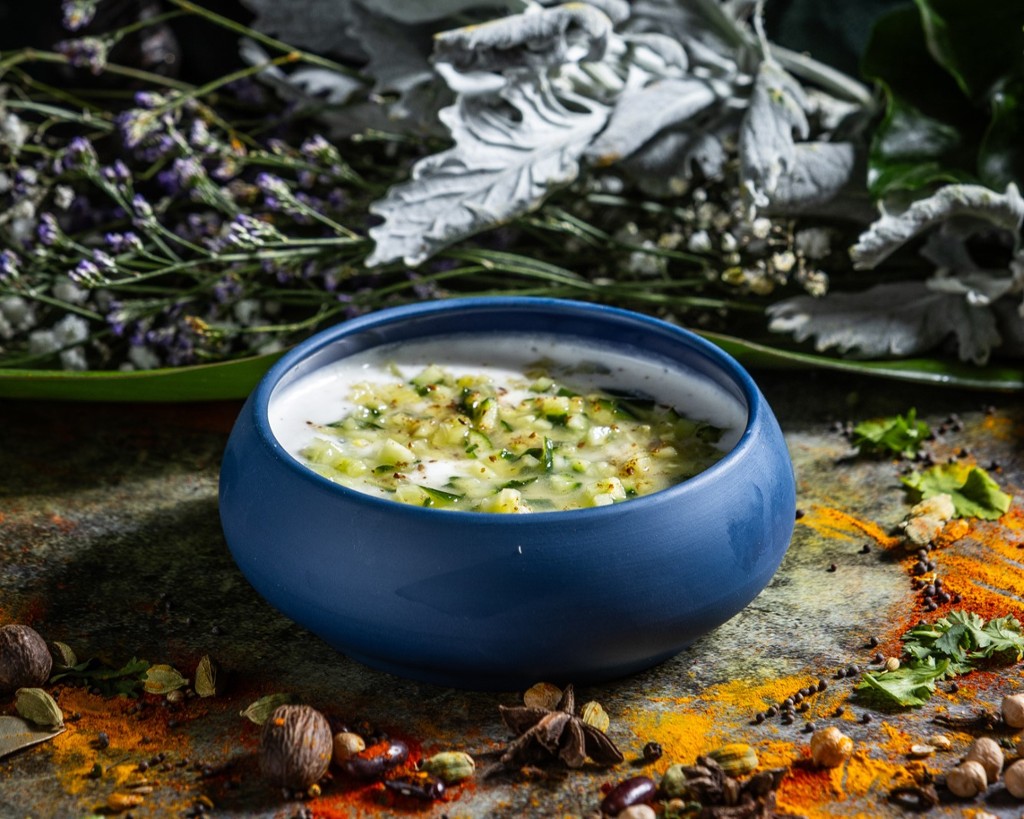 Fűszerezett joghurtos uborkasaláta, amely enyhíti a csípős ételek intenzitását.