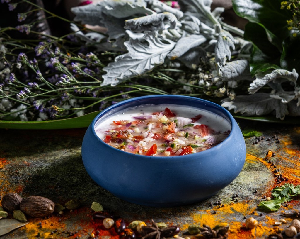A variety of vegetables in a flavorful yogurt dressing, a cooling and refreshing side dish.