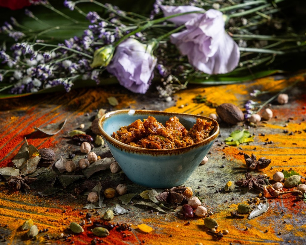 Pickled vegetables and fruits marinated in a spicy Indian brine. A perfect combination of sweet, tangy, and spicy flavors.