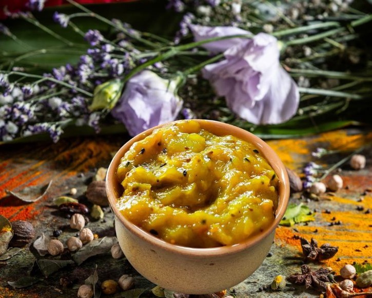 A chutney made from fresh mango slices, flavored with traditional spices and a hint of heat. A perfect sweet-spicy accompaniment to any Indian dish.
