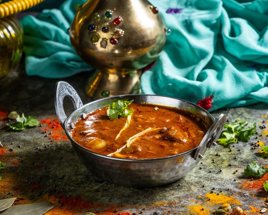 Hagyományos indiai fűszerekkel ízesített bárányhús, amely kétféle hagymás alapban főzünk. A hagyma gazdagítja az ízeket és lágyítja a bárány karakterét.