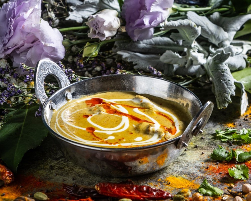 Bárányhús kockák sűrű kesudiós szószban főzve, szárított gyümölcsökkel és indiai fűszerekkel ízesítve. Enyhén édes, lágy és gazdag ízű fogás.