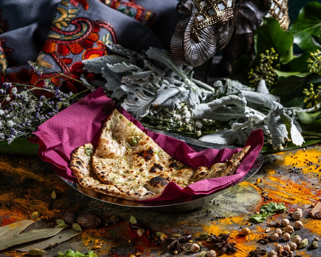 Tradicionális tandoorban sült kovász nélküli teljes kiőrlésű lepénykenyér chilivel és fokhagymával ízesítve.