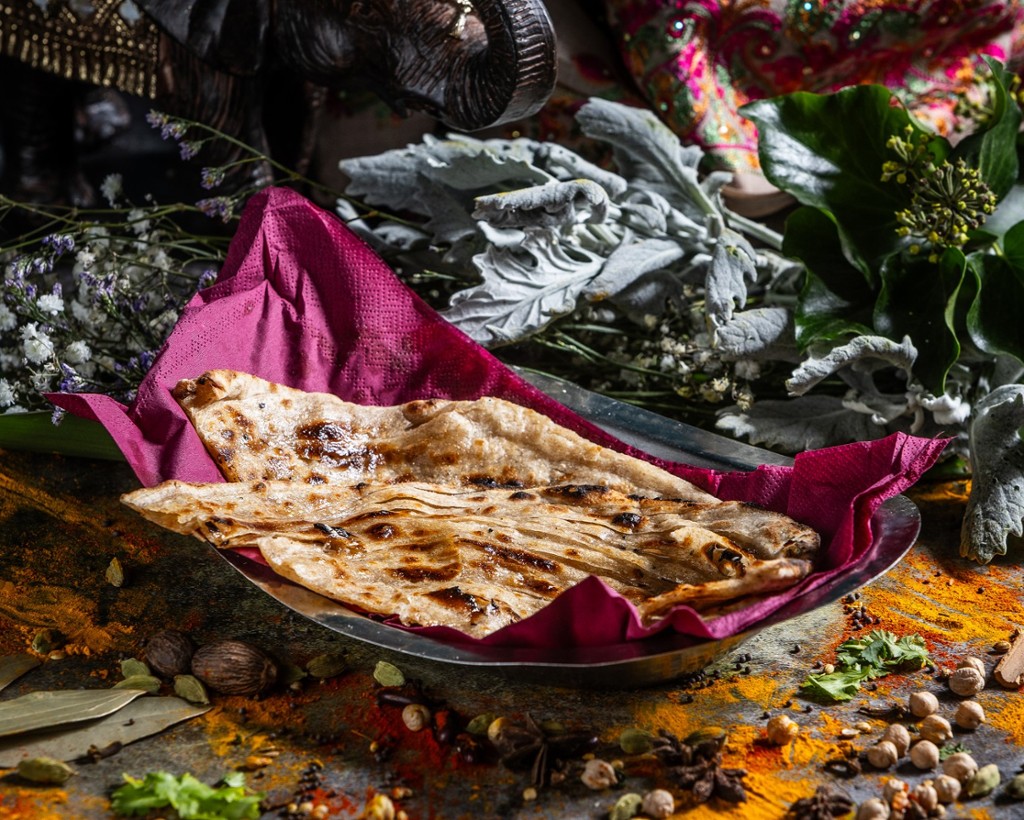Többrétegű lepénykenyér, minden rétege gazdagon megkenve vajjal.
